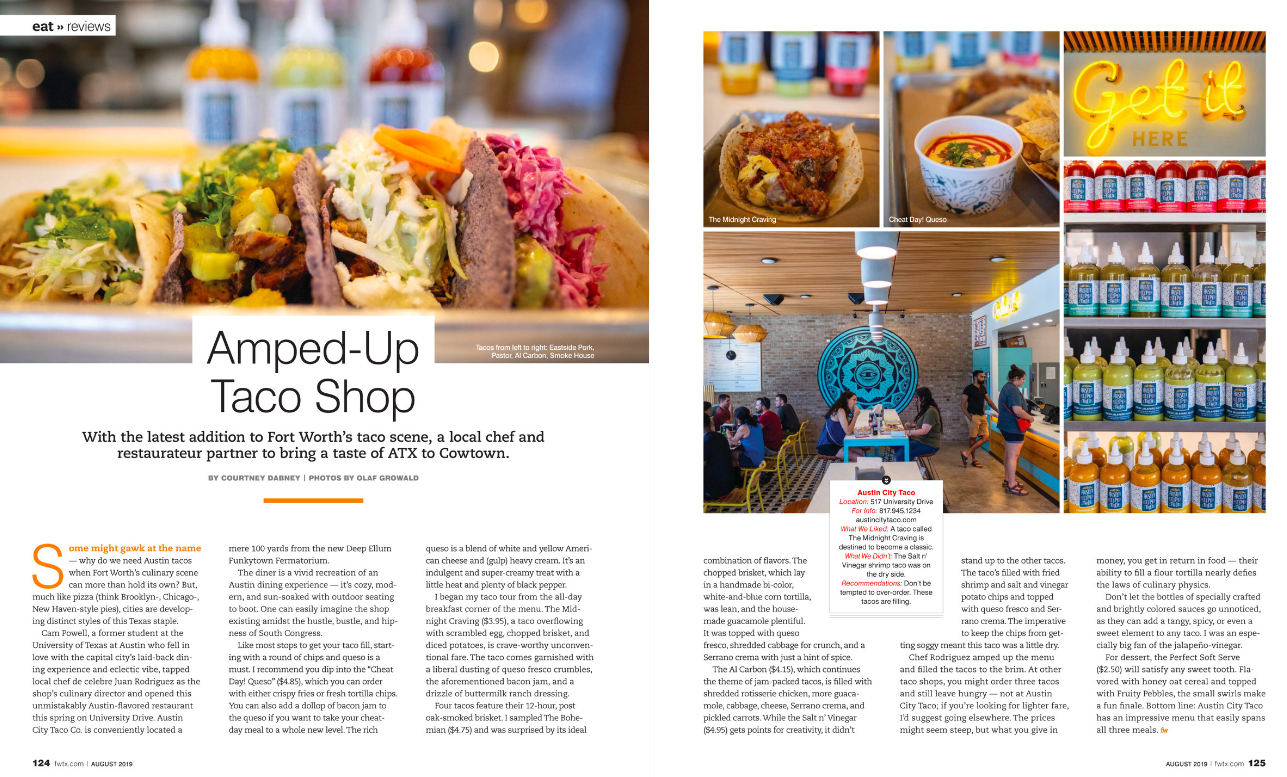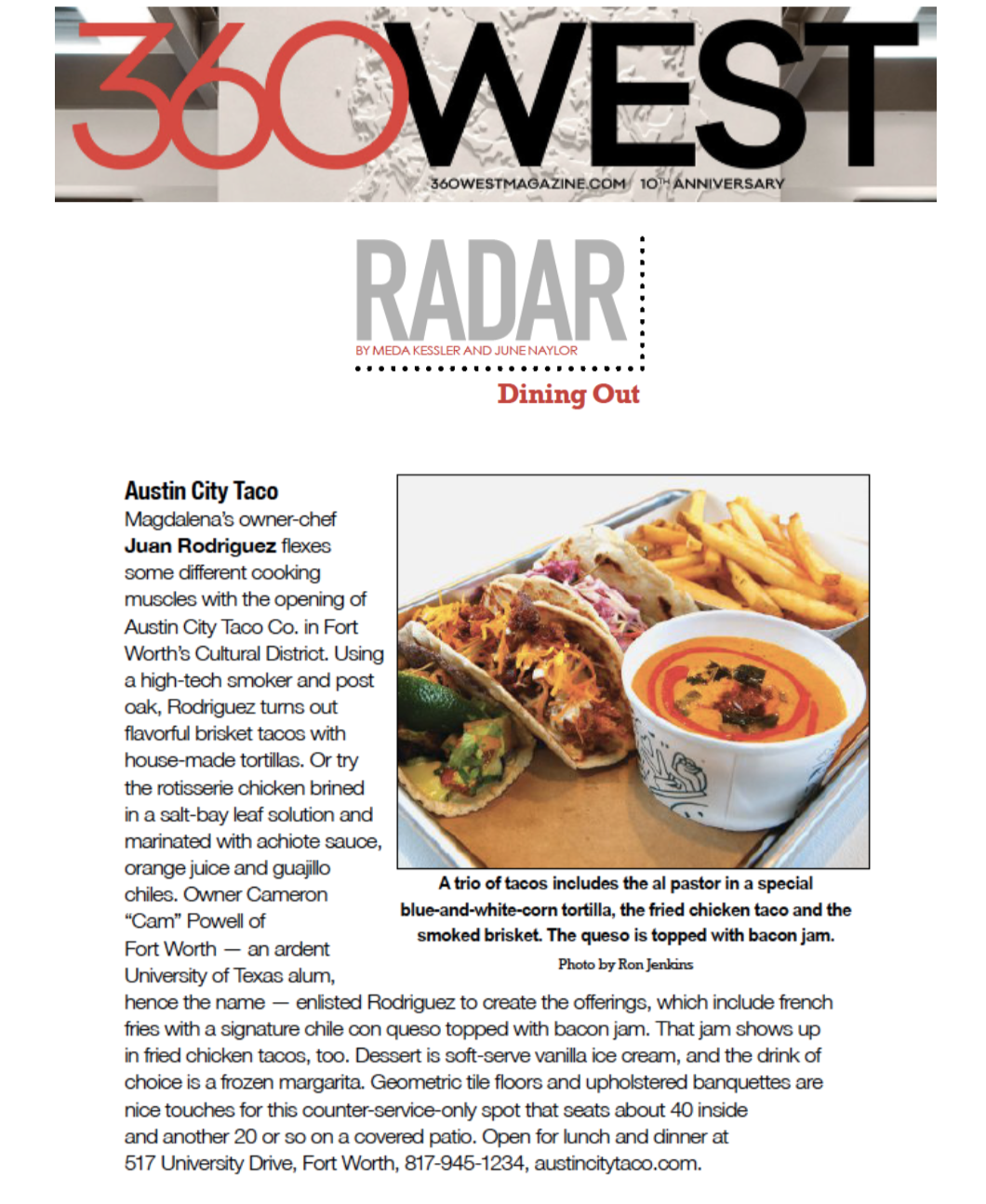 PAVLOV’s top-tier, regional press placements have put client Austin City Taco Co. squarely in the “lime”light, helping ACTC to impressive performance in its first six months. To support the opening of the new concept taqueria, team PAVLOV deployed a campaign of social media, influencer marketing and PR/media relations that has earned more than 30+ placements in outlets such as Texas Monthly, Culture Map, Fort Worth Magazine and CraveDFW, among others –– and helped differentiate its brand against muy caliente competition.